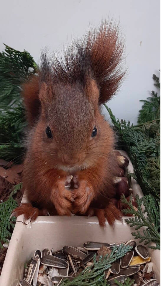 Unser Ziel ist die erfolgreiche Rückkehr der gesunden Eichhörnchen in ihr natürliches Habitat, wo sie ein freies Leben führen können.